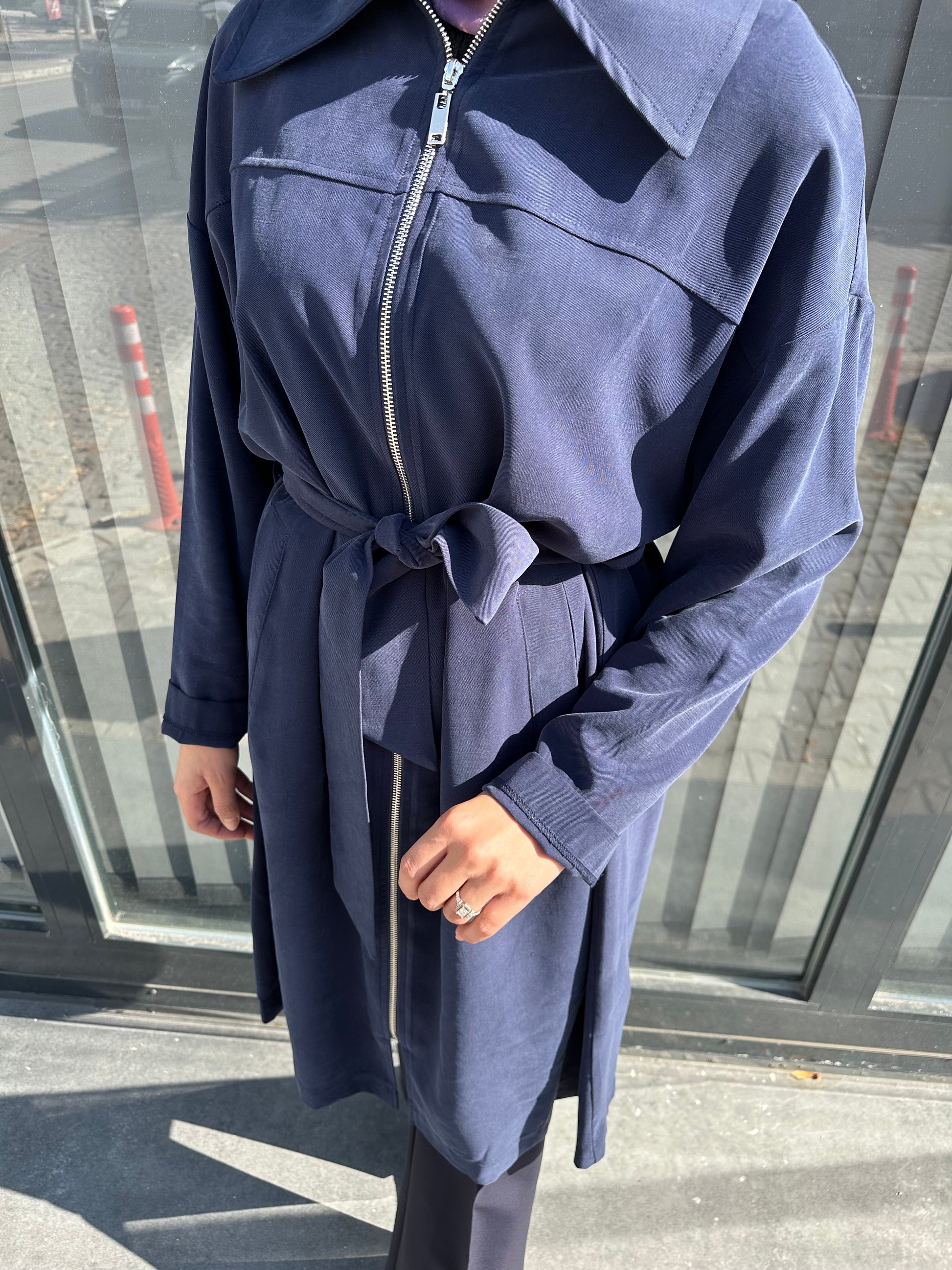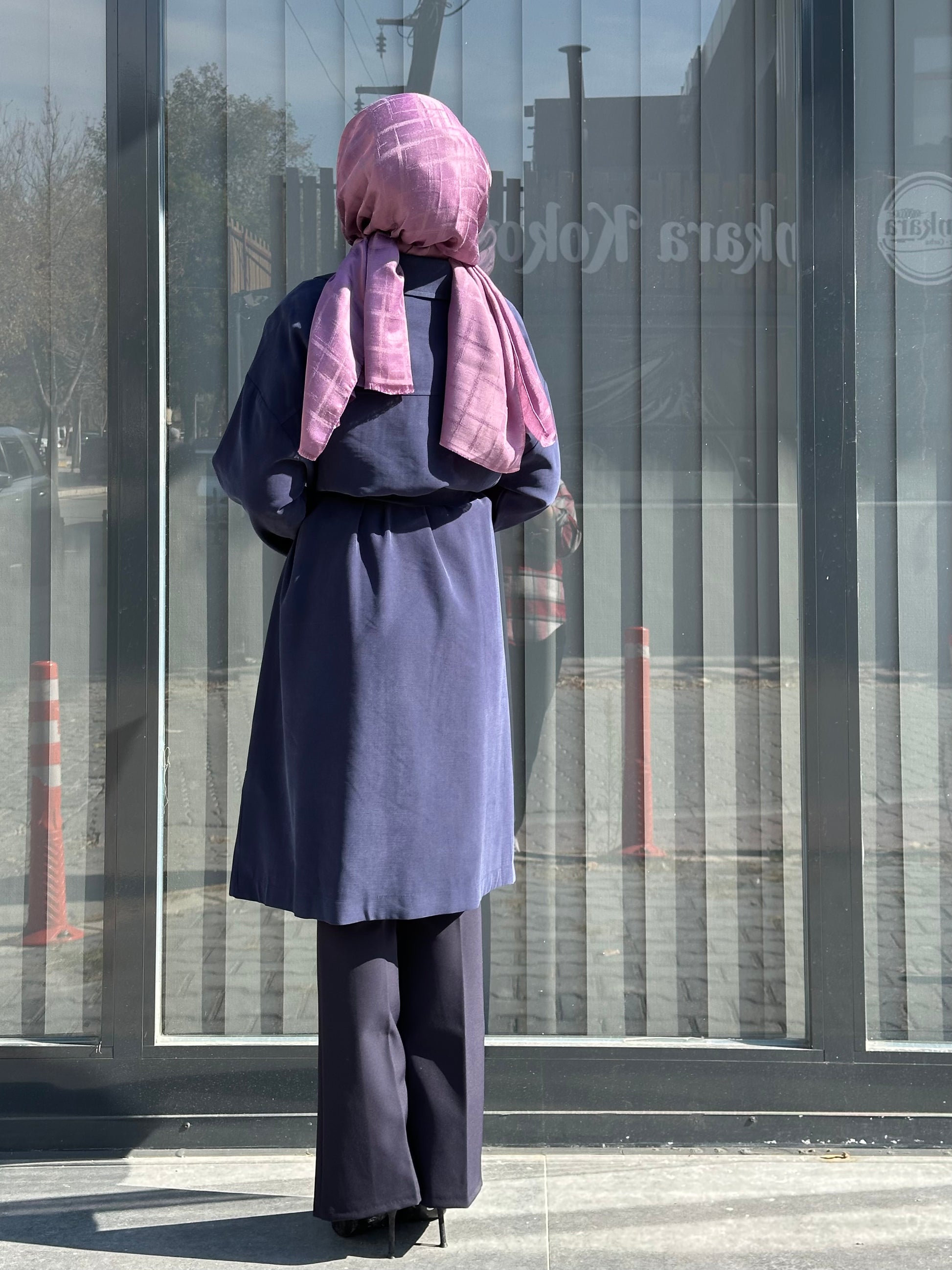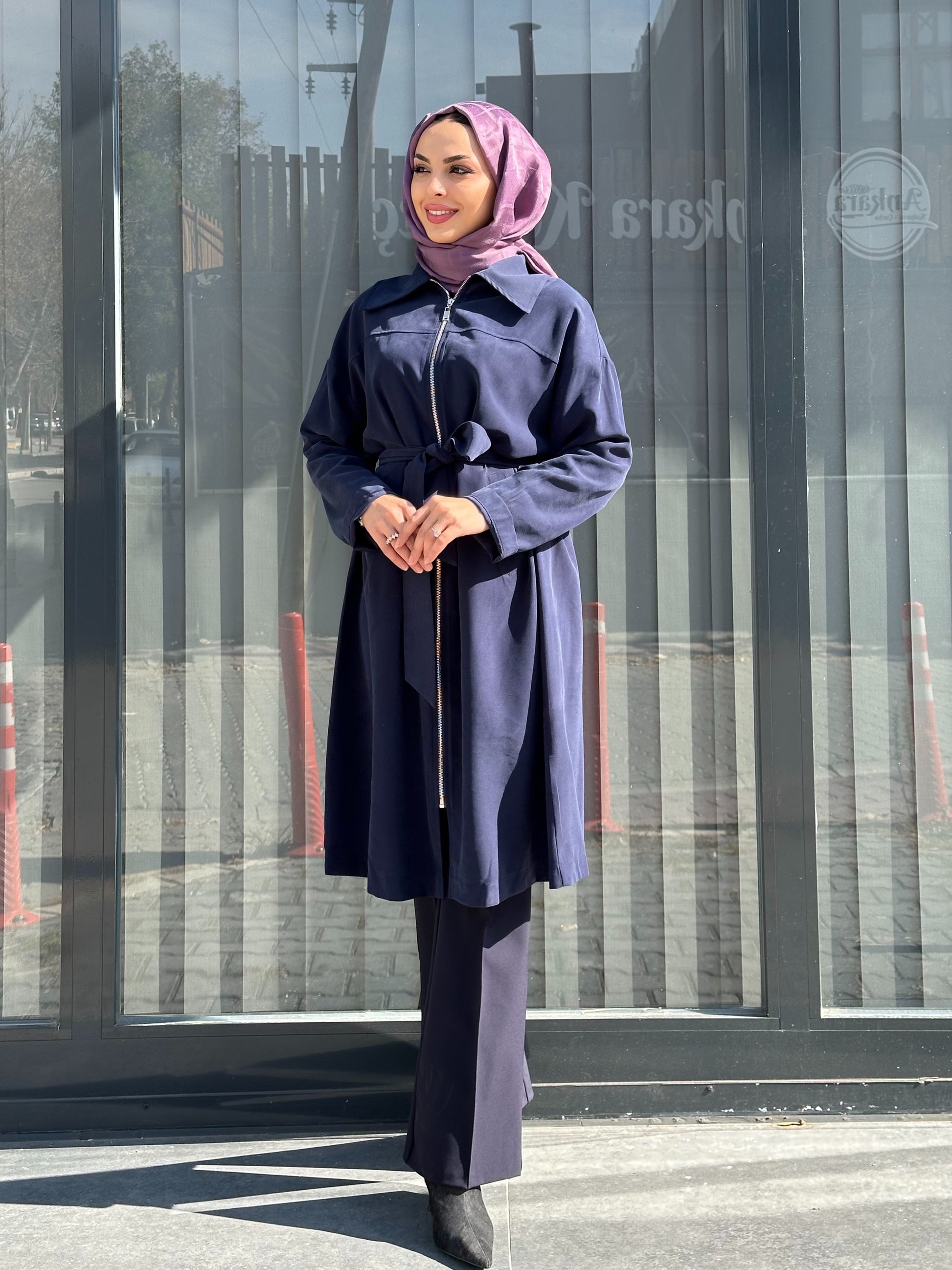 LACİVERT KENDİNDEN KEMERLİ KAP