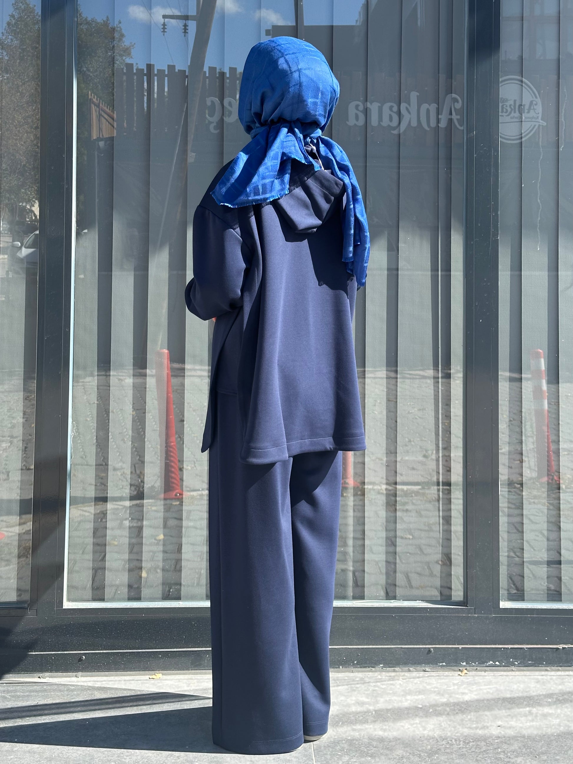 LACİVERT ÖNÜ ÇITÇIT DETAYLI YÜKSEK YAKA PANTOLON TAKIM