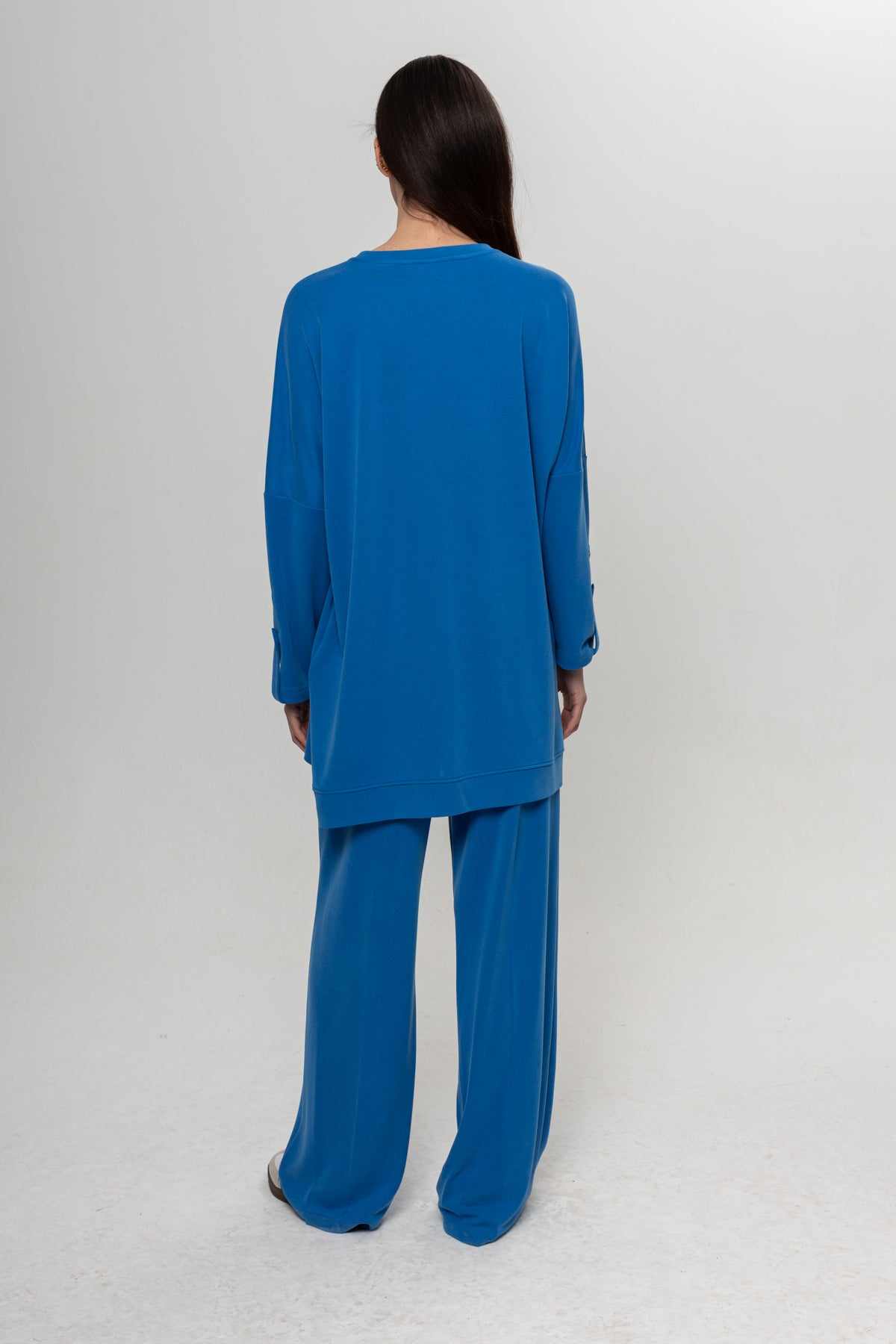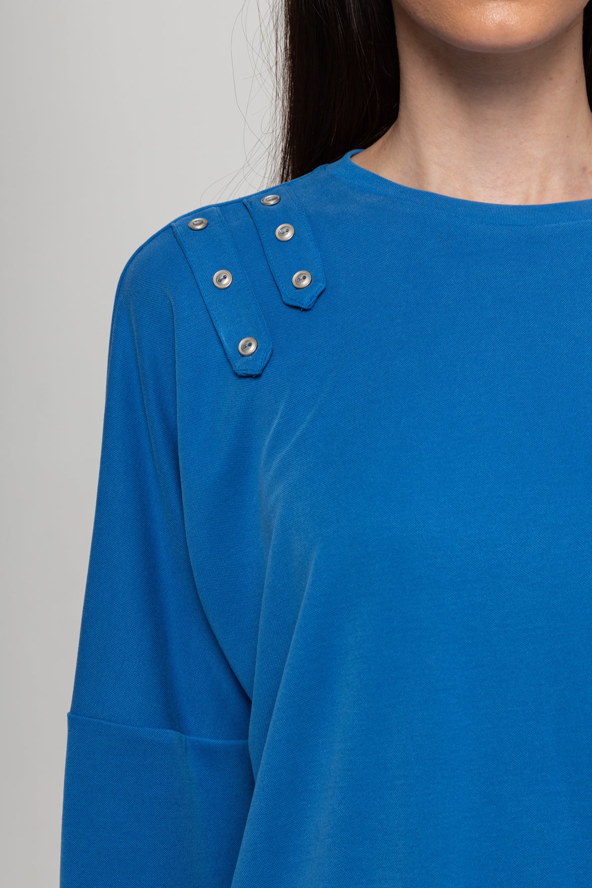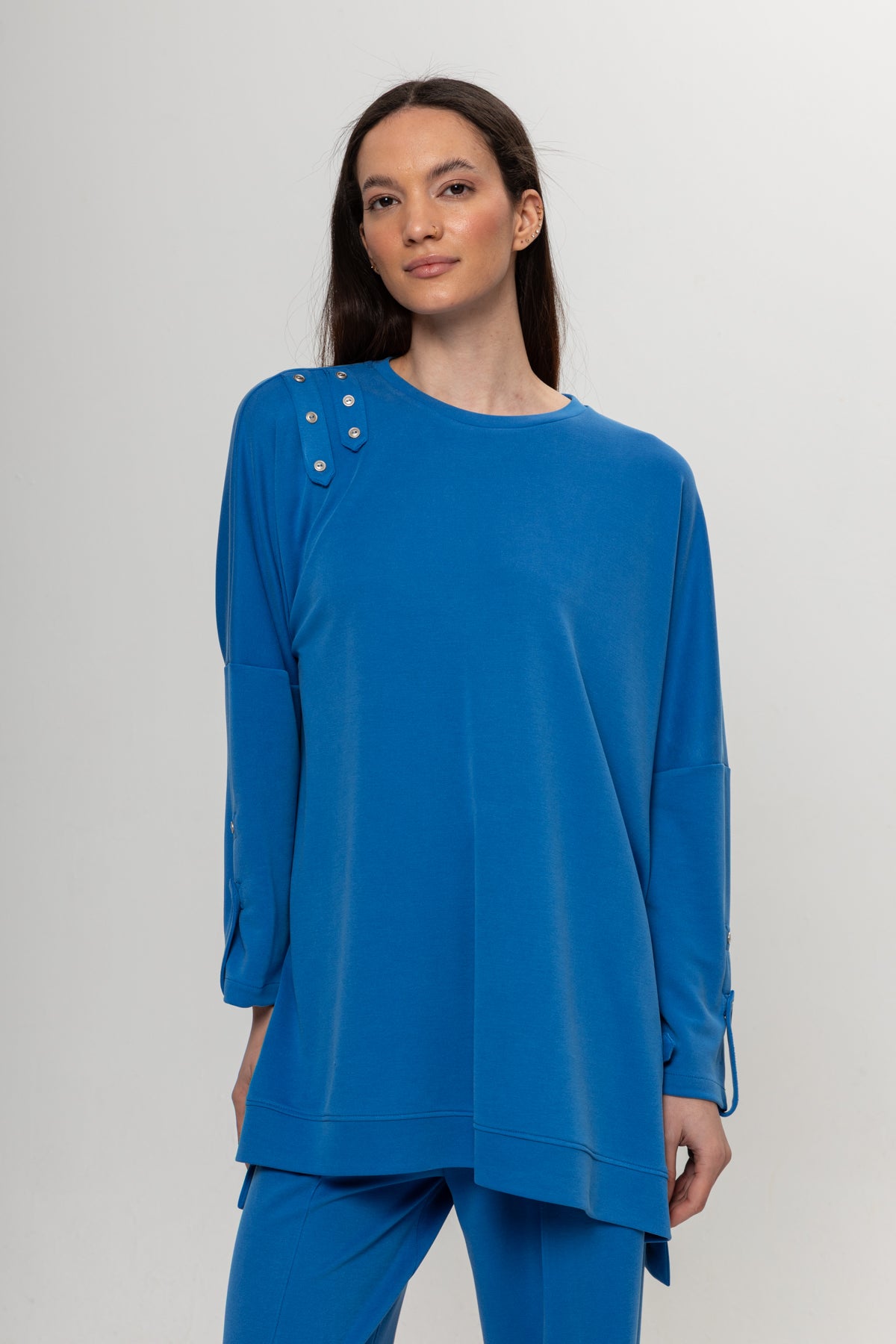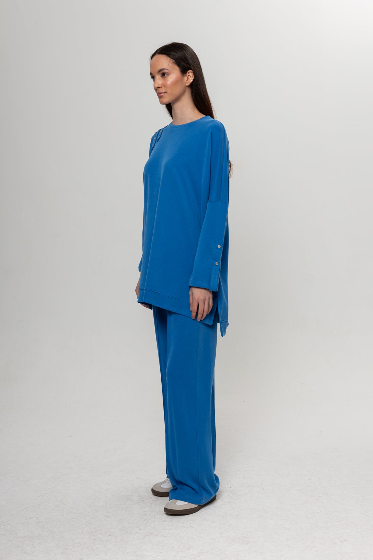 MAVİ OMUZLARI DÜĞME DETAYLI İKİLİ TAKIM