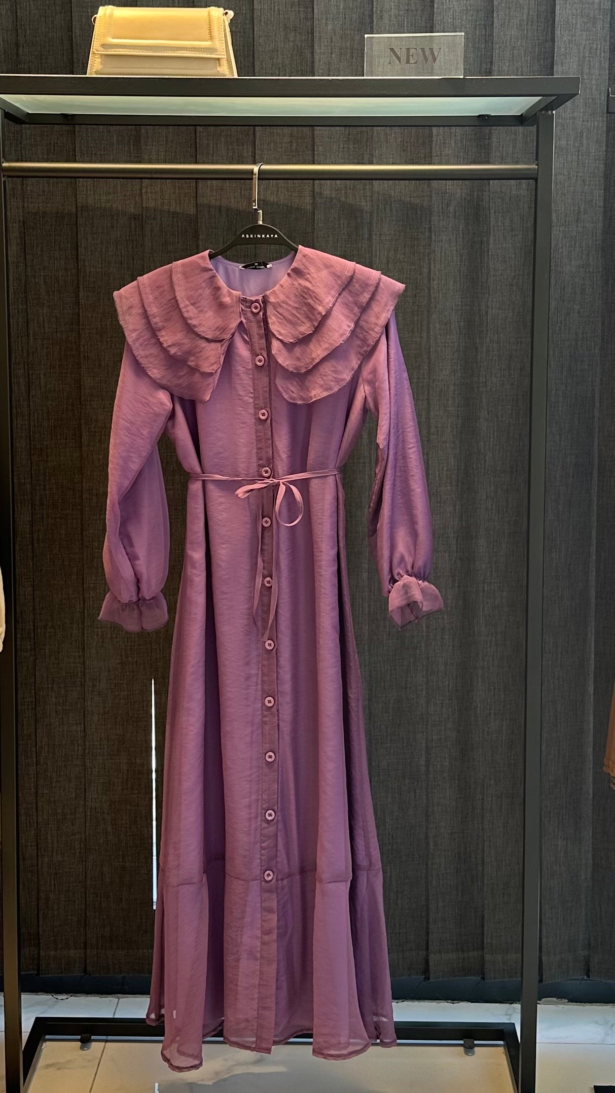 MOR BEBE YAKA ÖNDEN DÜĞMELİ TÜL ELBİSE