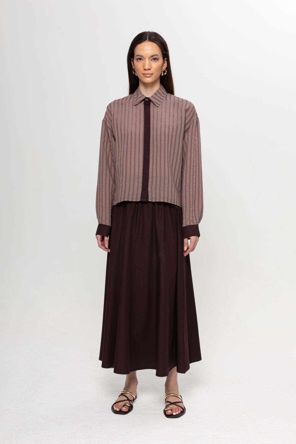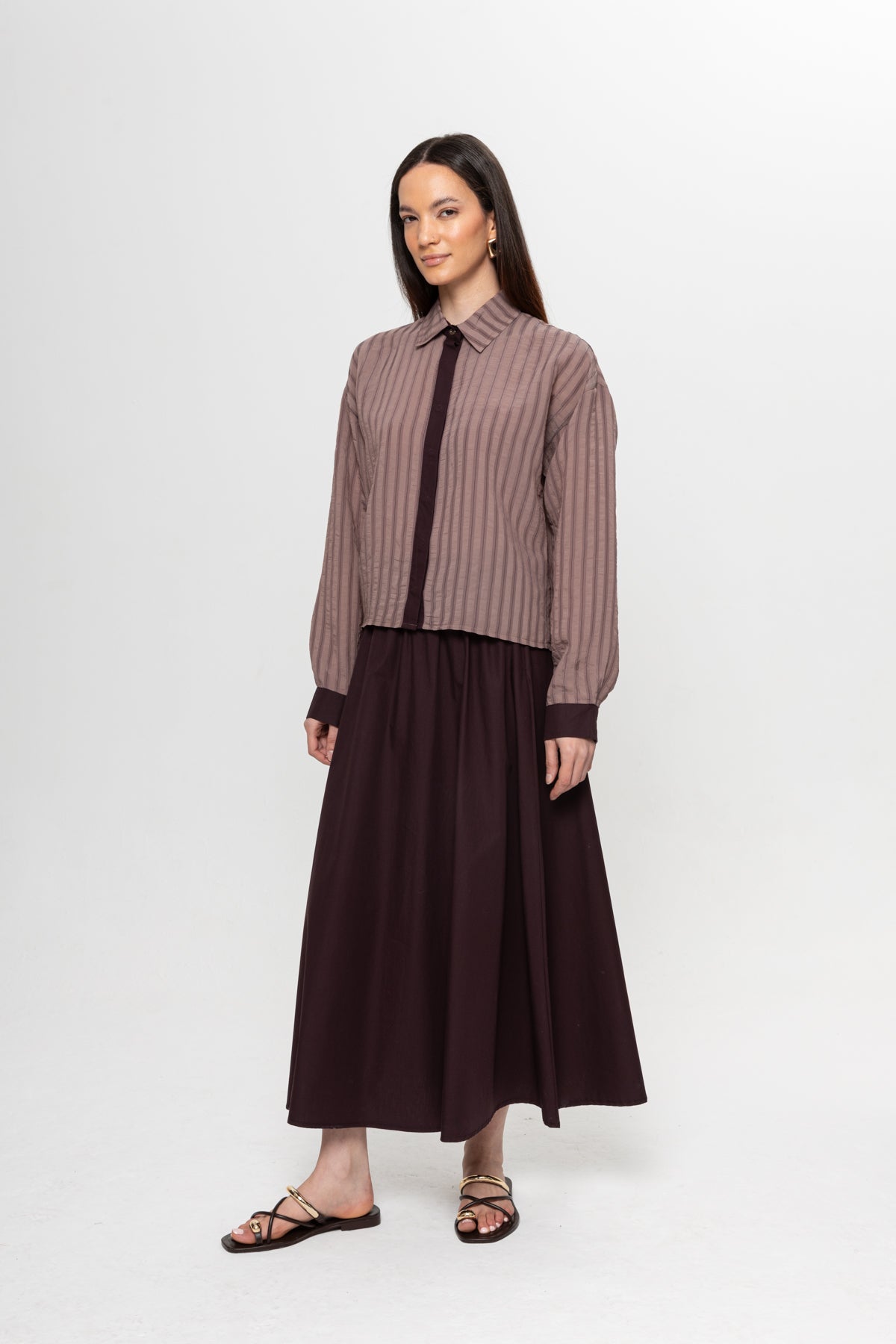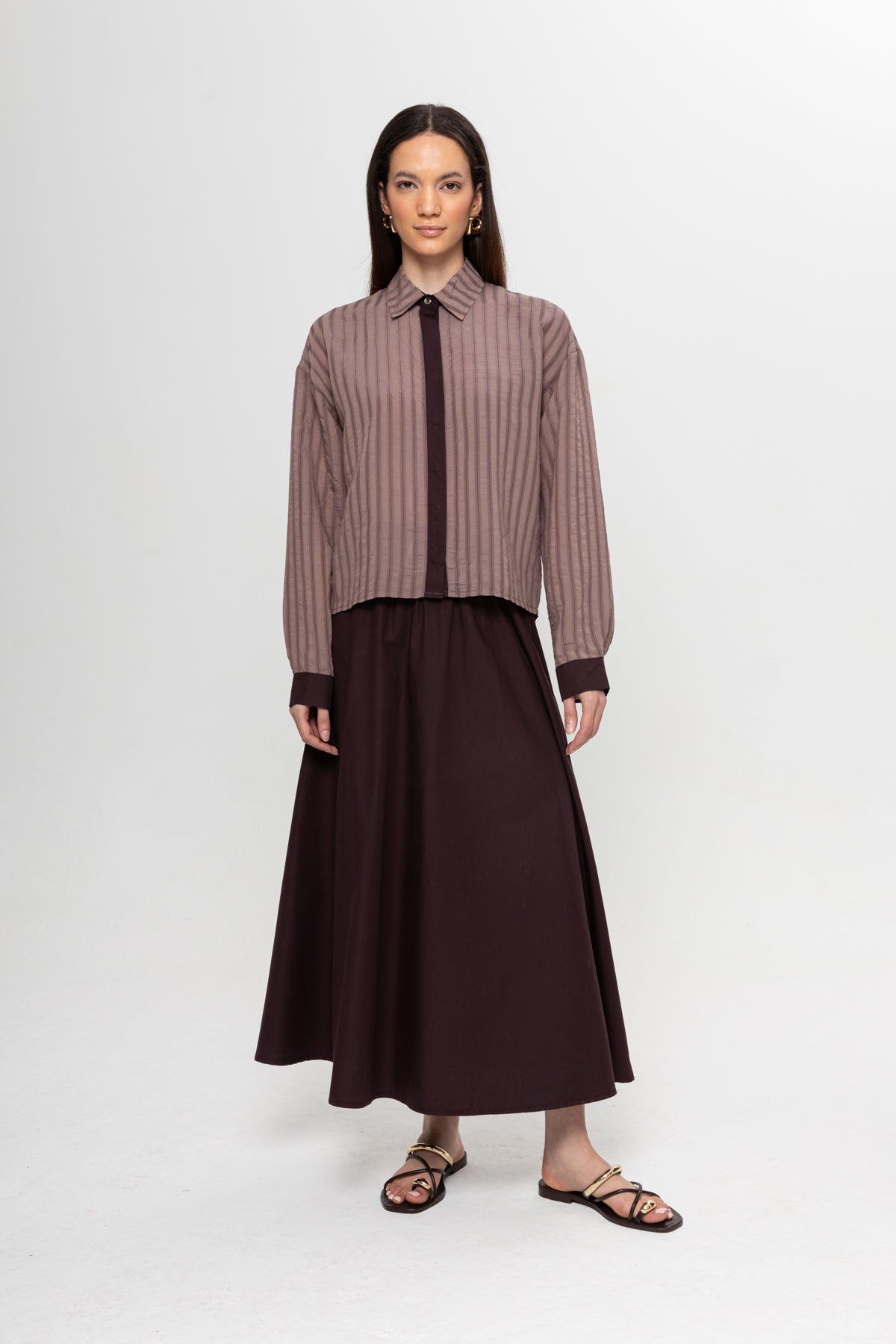 BORDO ÇİZGİLİ GİZLİ PATLI ETEKLİ TAKIM