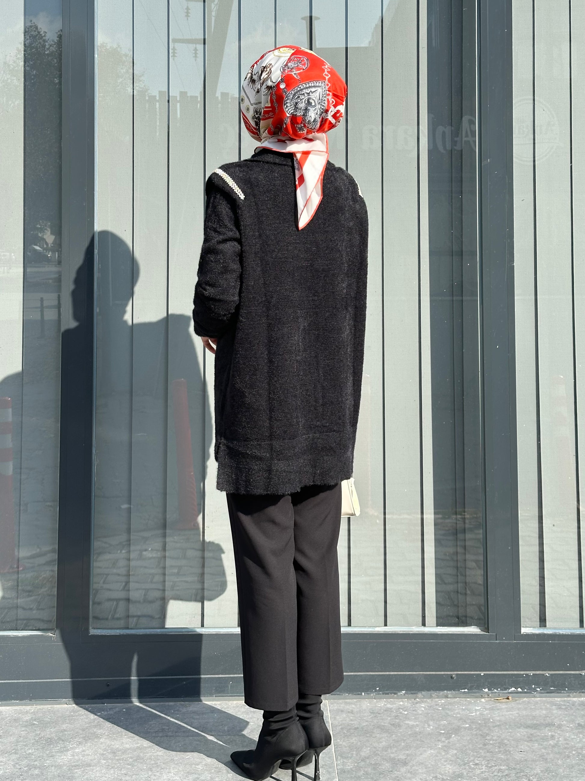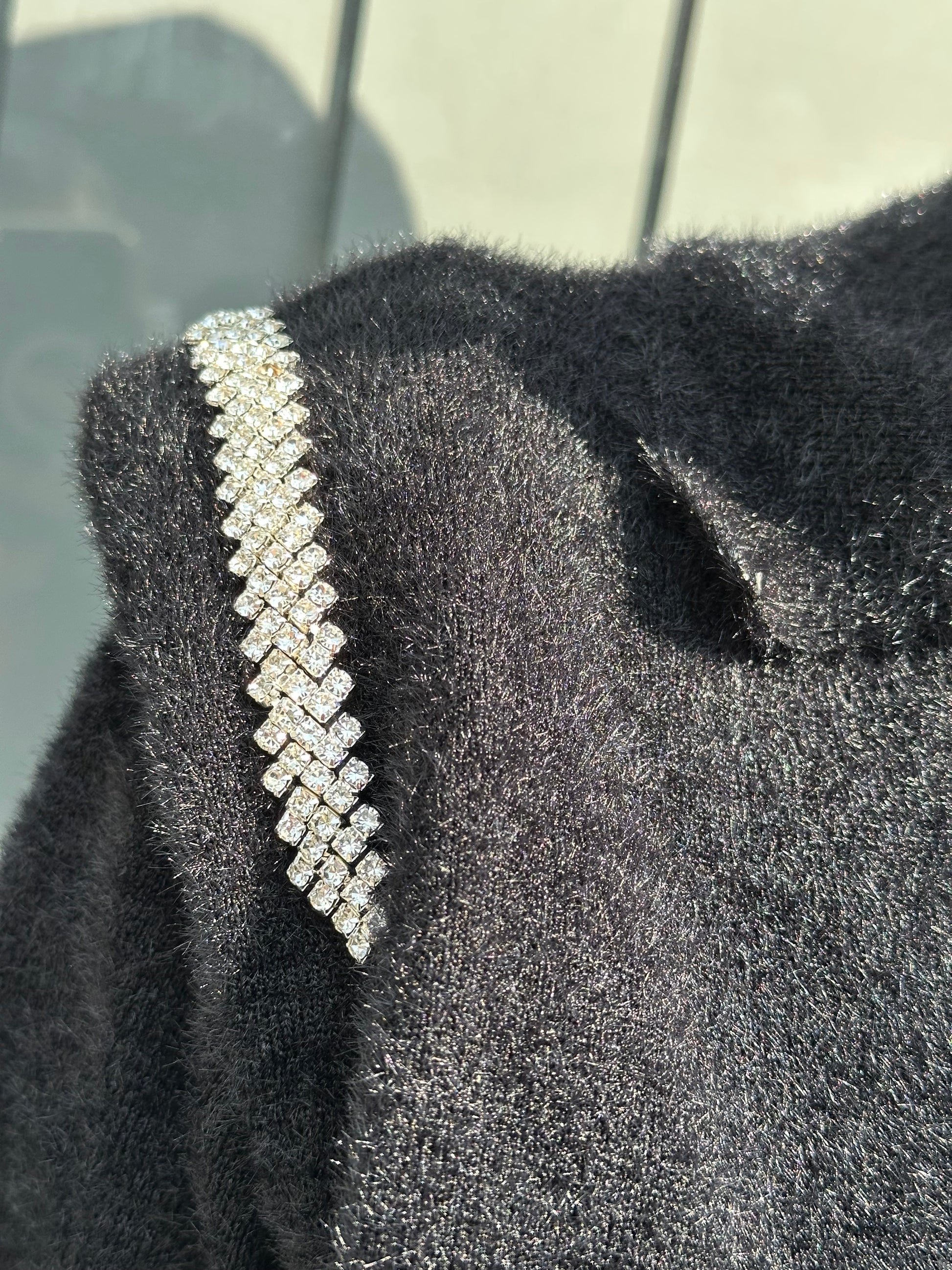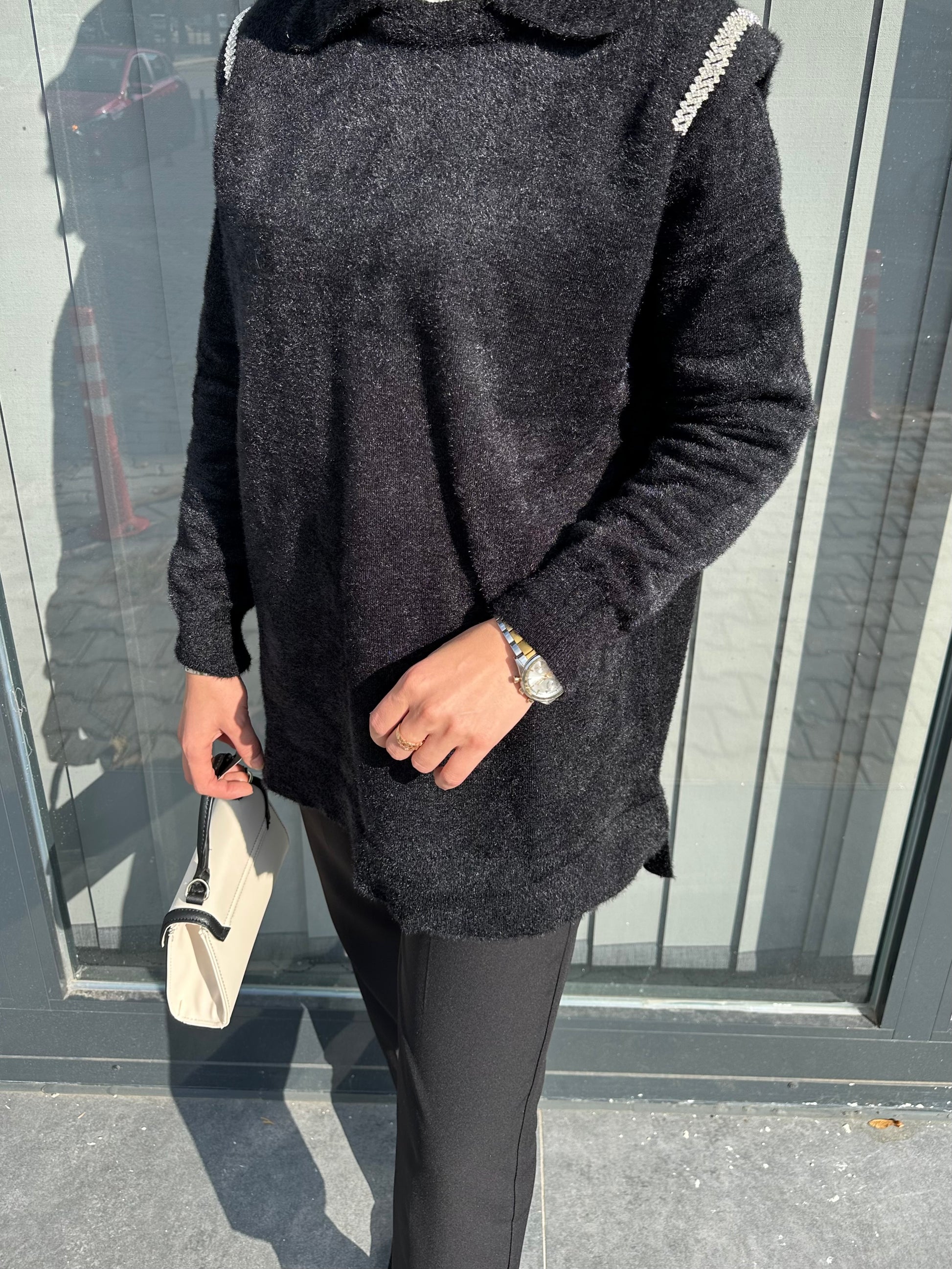 SİYAH OMUZLARI TAŞLI ANGORA KAZAK