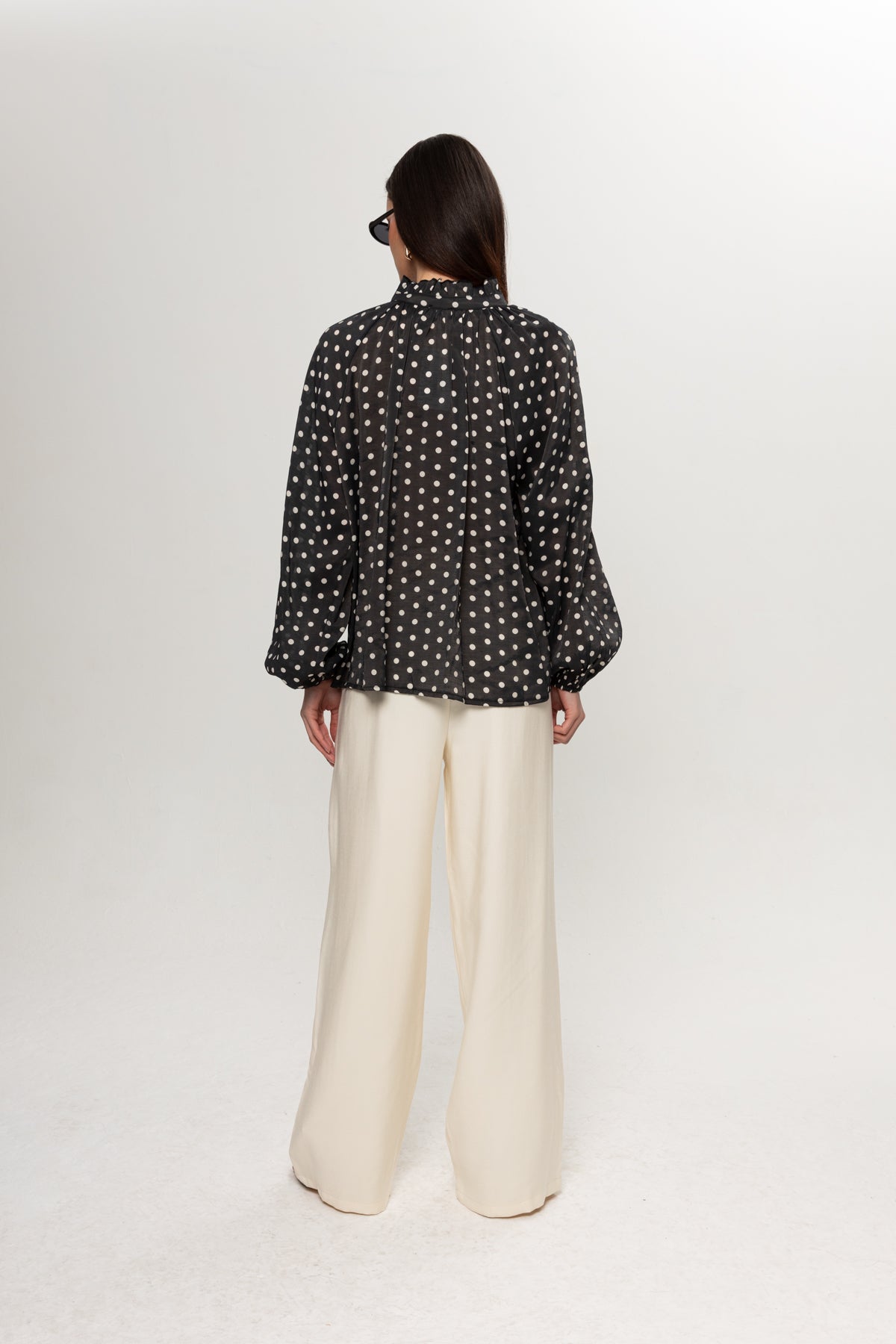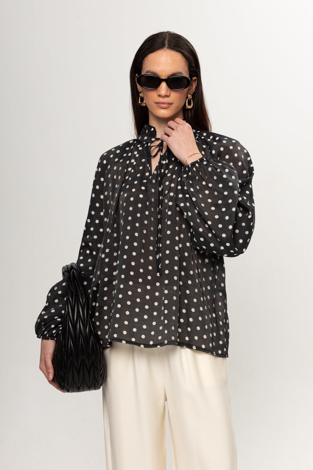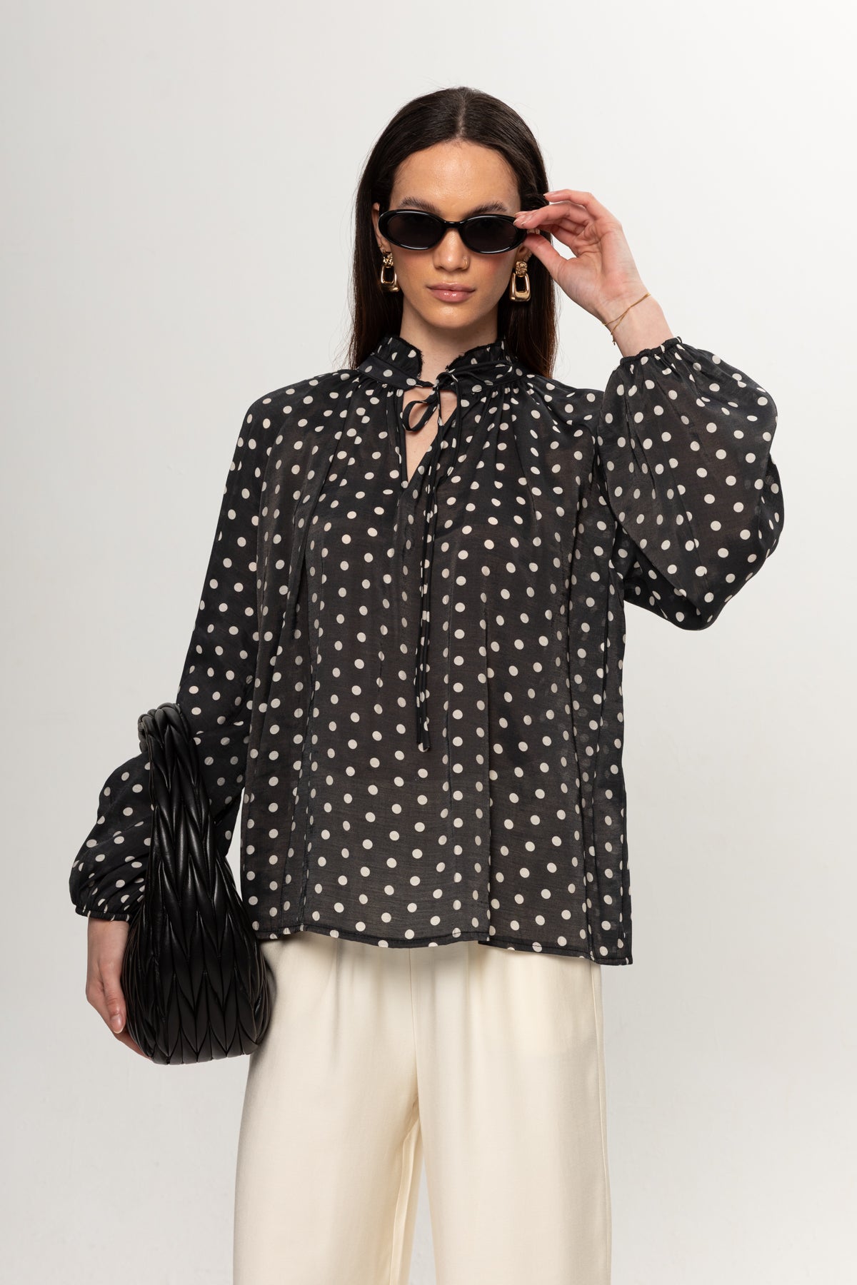 SİYAH BEYAZ PUANTEYELİ BLUZ