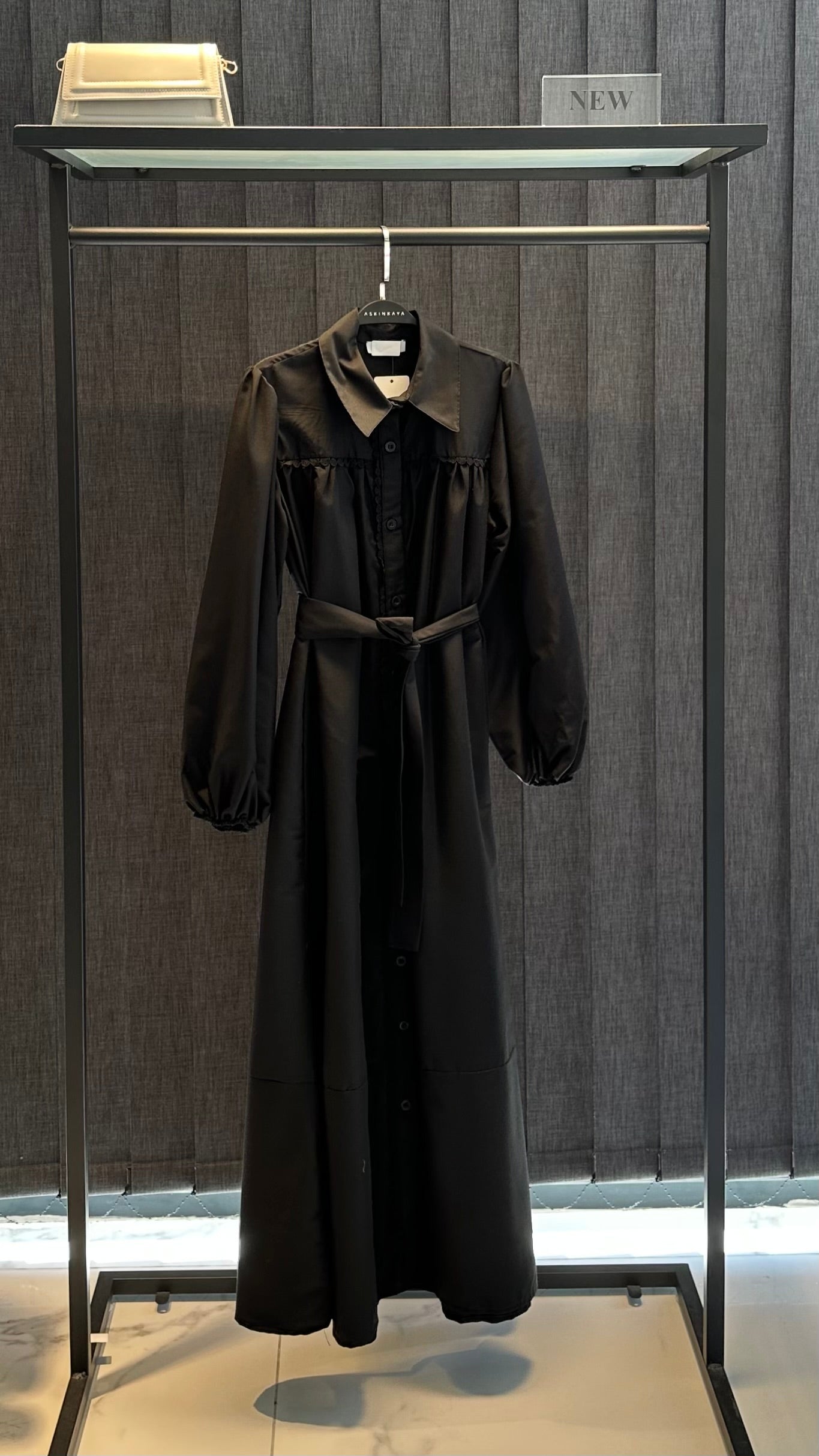 SİYAH ÖNDEN DÜĞMELİ ELBİSE