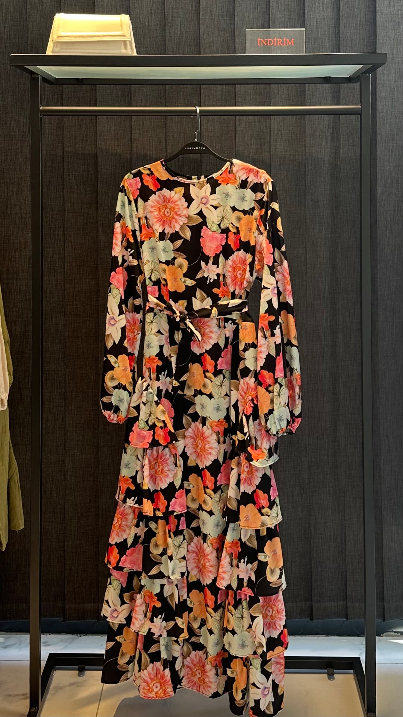 SİYAH RENKLİ ÇİÇEKLİ SATEN ELBİSE