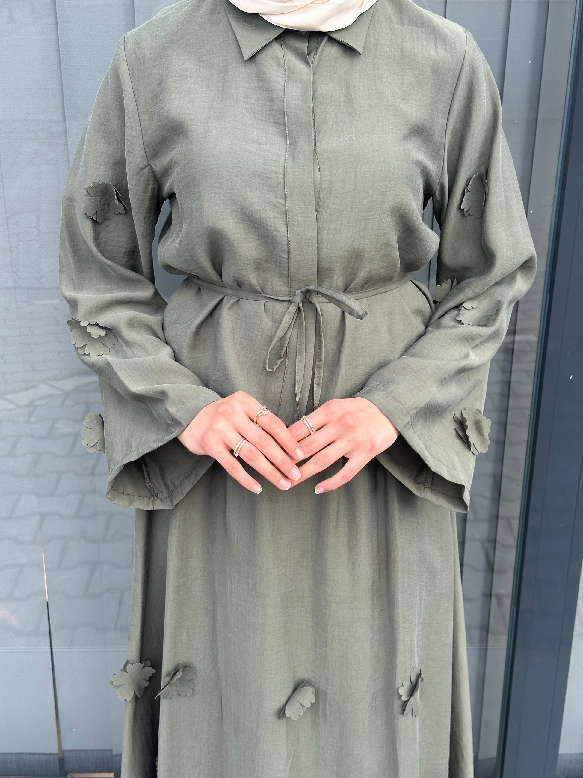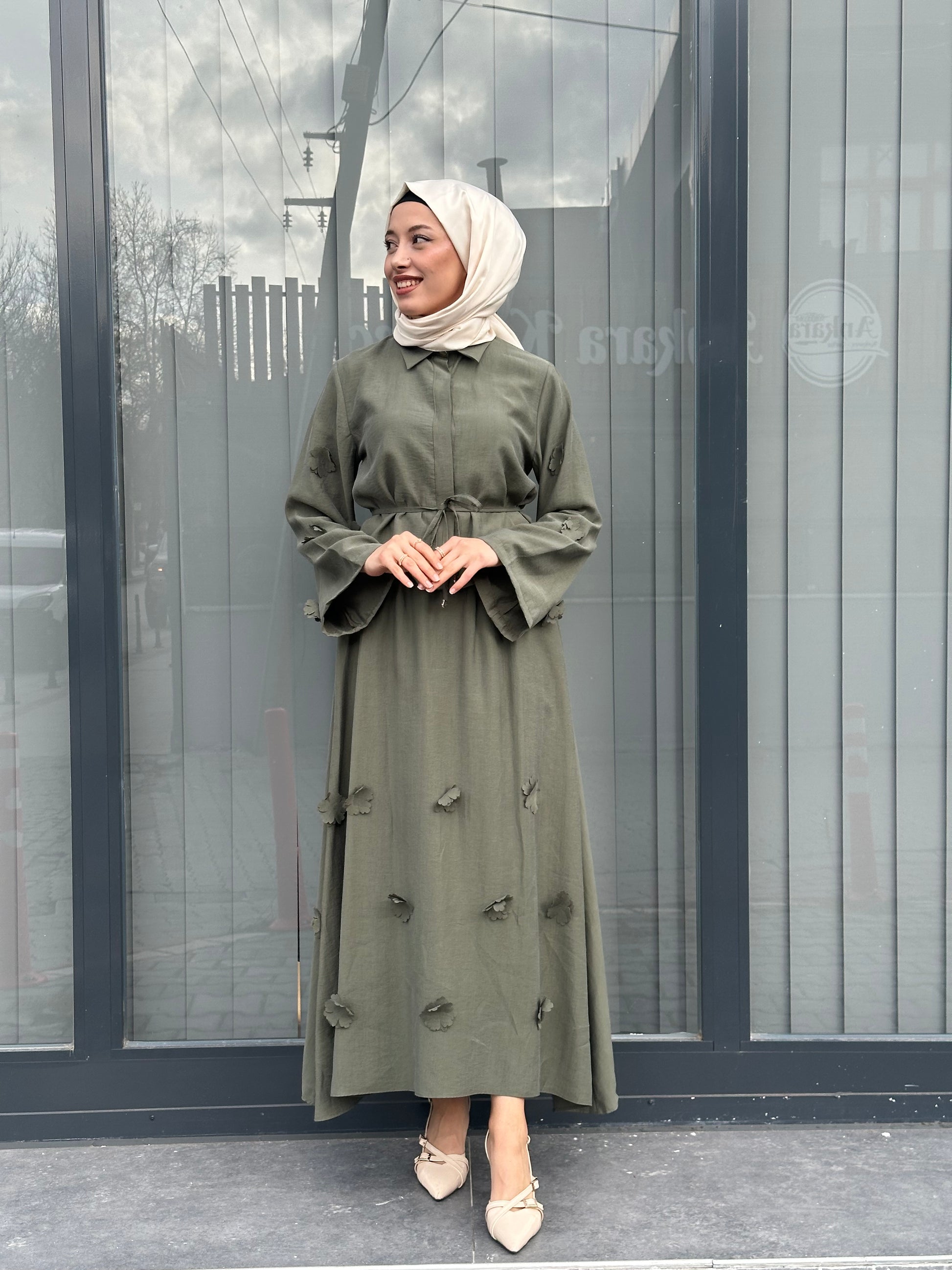 YEŞİL ÜÇ BOYUTLU ÇİCEKLİ ETEK TAKIM
